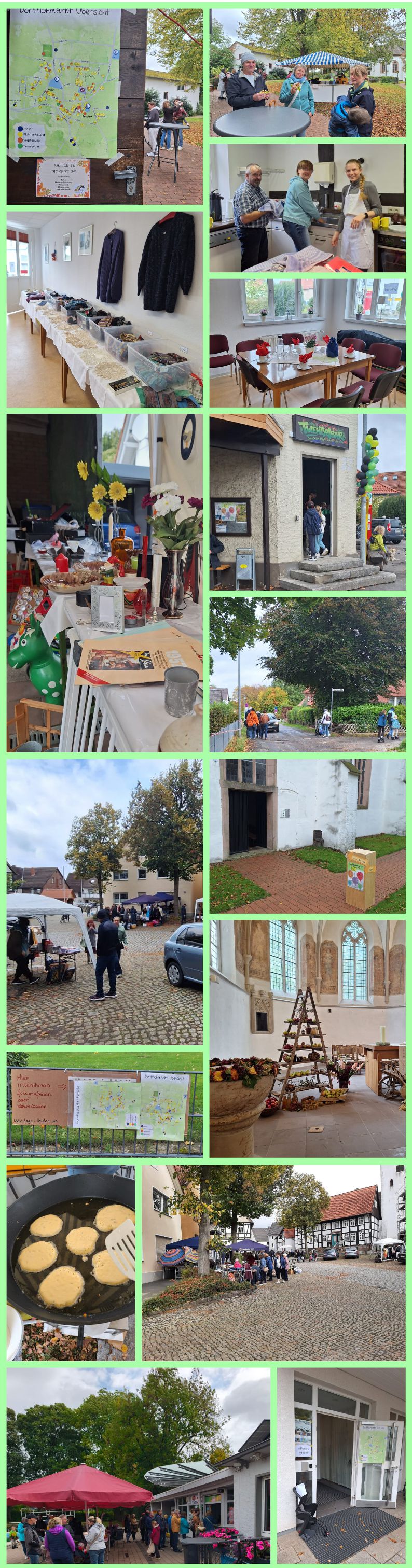 - In der Kirche begann der Tag bereits um 10:00 Uhr mit einem festlichen Erntedankgottesdienst begleitet von den Mixed Voices. Ab 11:30 Uhr folgten Begegnungen, Kirchenführungen und ein Bücherflohmarkt.